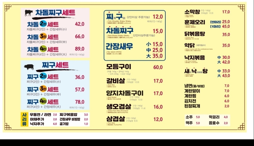 ๋ผ์ง€๊ณ ๊ธฐ ๋ชฉ์‚ด ์ฐŒ๊ตฌ์™€ ์†Œ๊ณ ๊ธฐ ์ฐจ๋Œ๋ฐ•์ด ์ฐŒ๊ตฌ 2๊ฐ€์ง€๊ฐ€ ์žˆ์–ด์š”.