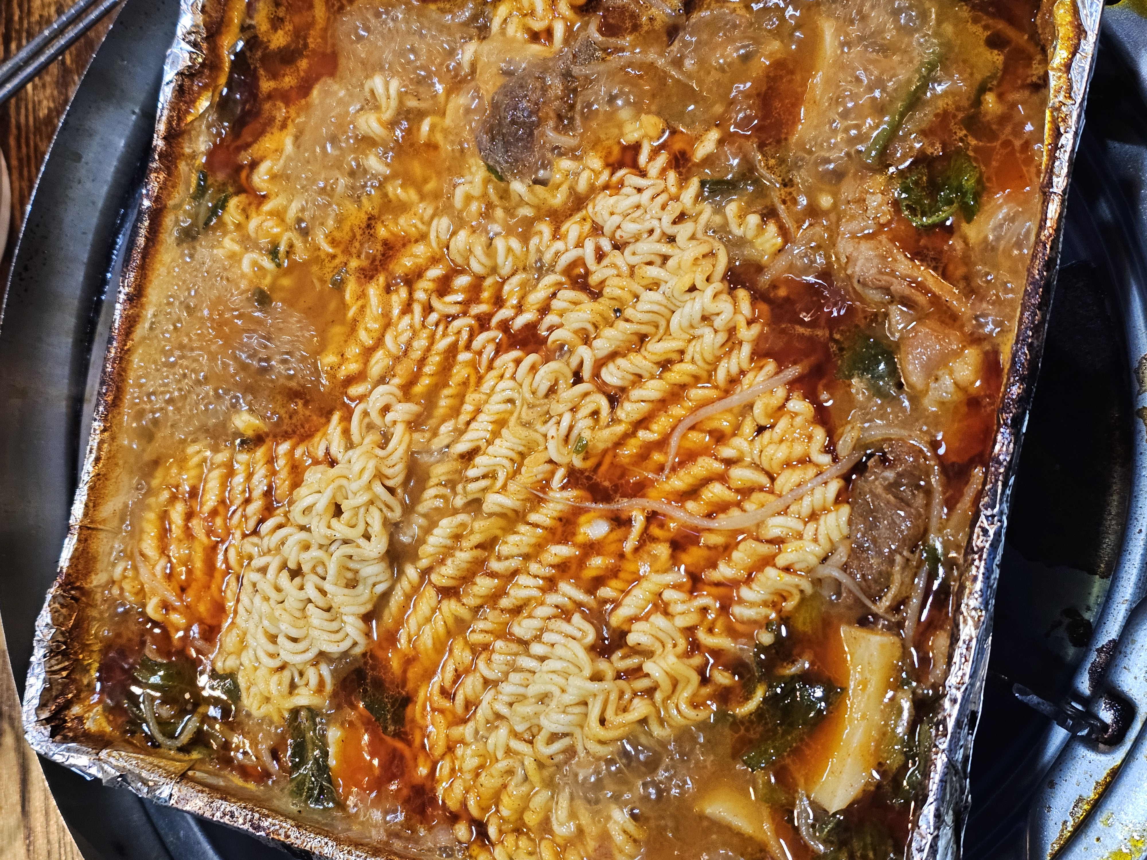 ๋ผ๋ฉด์ฌ๋ฆฌ๋ ์ถ๊ฐํด์ ๋จน๊ณ , ๋ง์ง๋ง์ ๊ตญ๋ฃฐ์ด์ฃ .